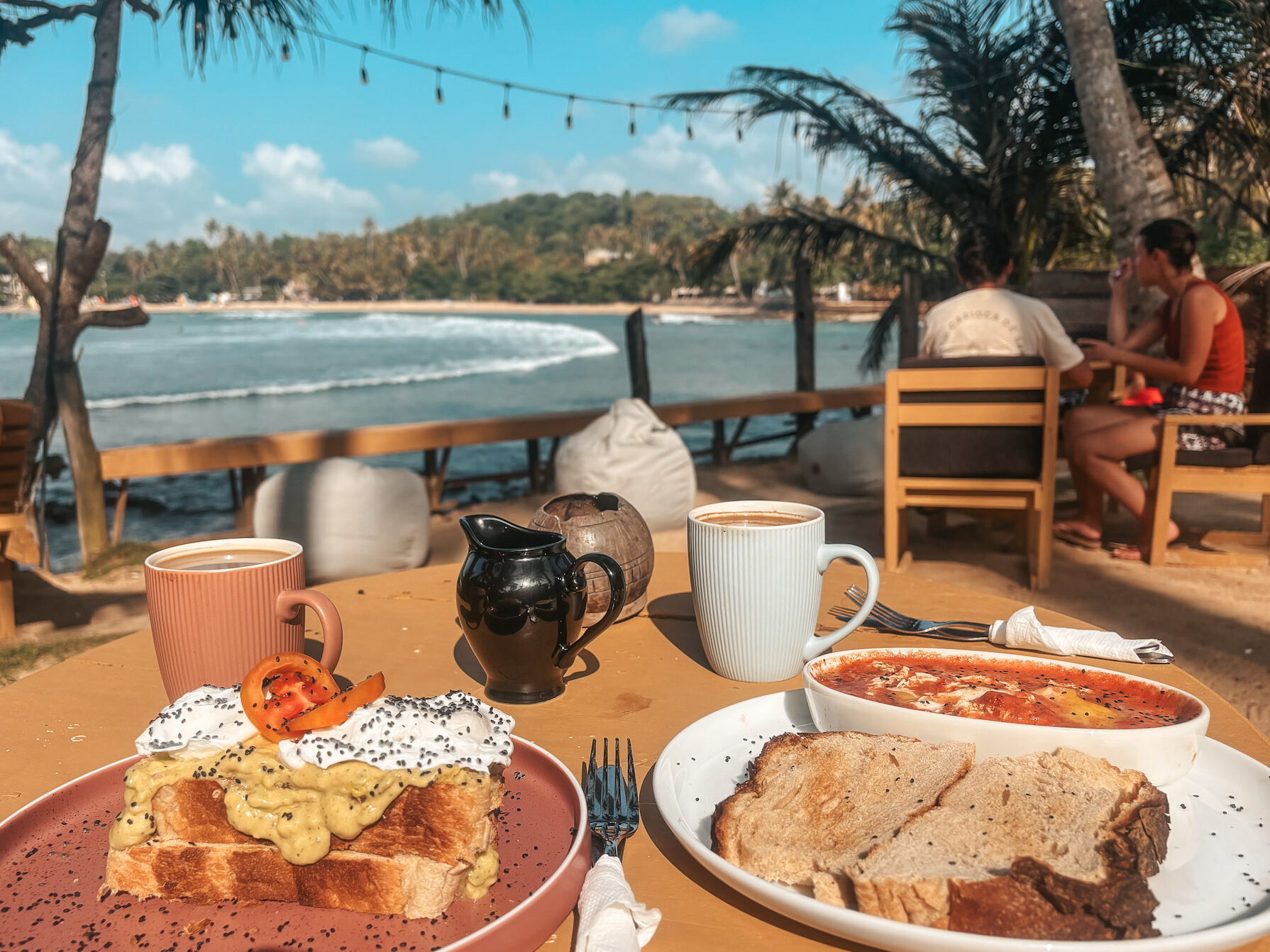 Mornings in Hiriketiya belong to the early risers: surfers checking the bay, barefoot walkers tracing the edge of the sand, café tables filling slowly as the light moves across the water.